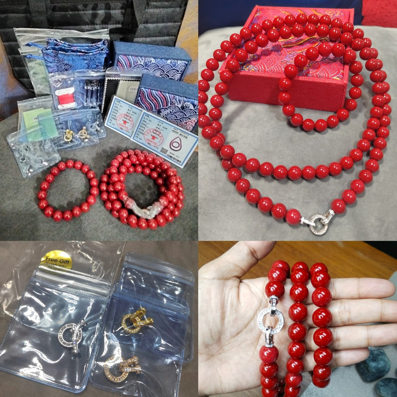 Certified Natural South Red Agate & Ebony Wood Twin Bracelet Set | Bodhi Seed Accents | ę²č“µå®| 999 Silver Filled Vermeil SL392